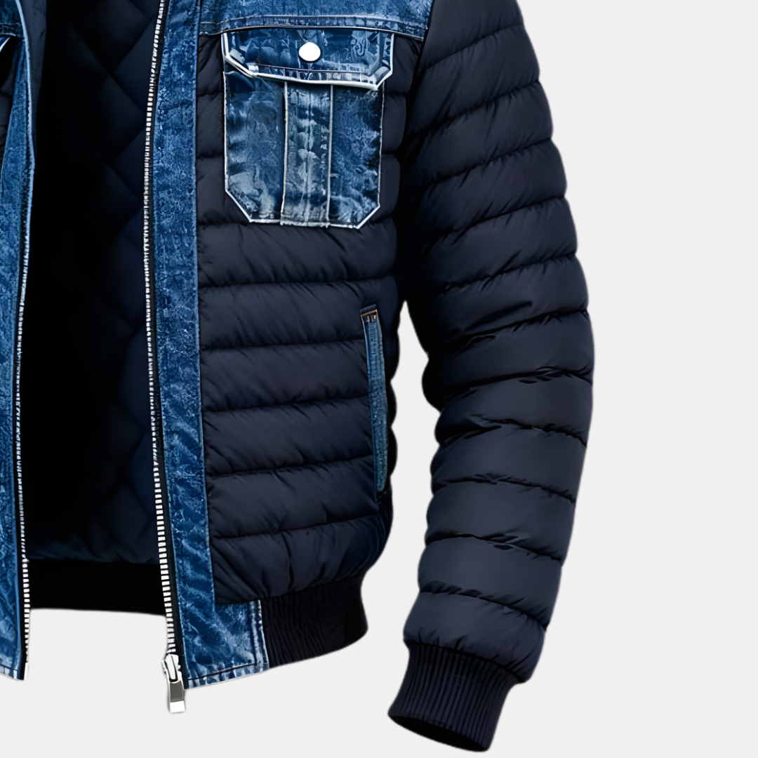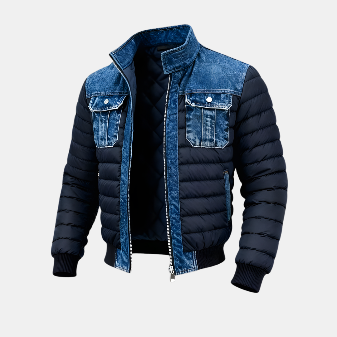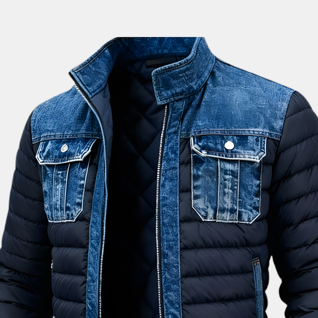 Lorenzo™ łączy ponadczasowy wygląd denimu z komfortem ciepłej, lekkiej kurtki pikowanej.