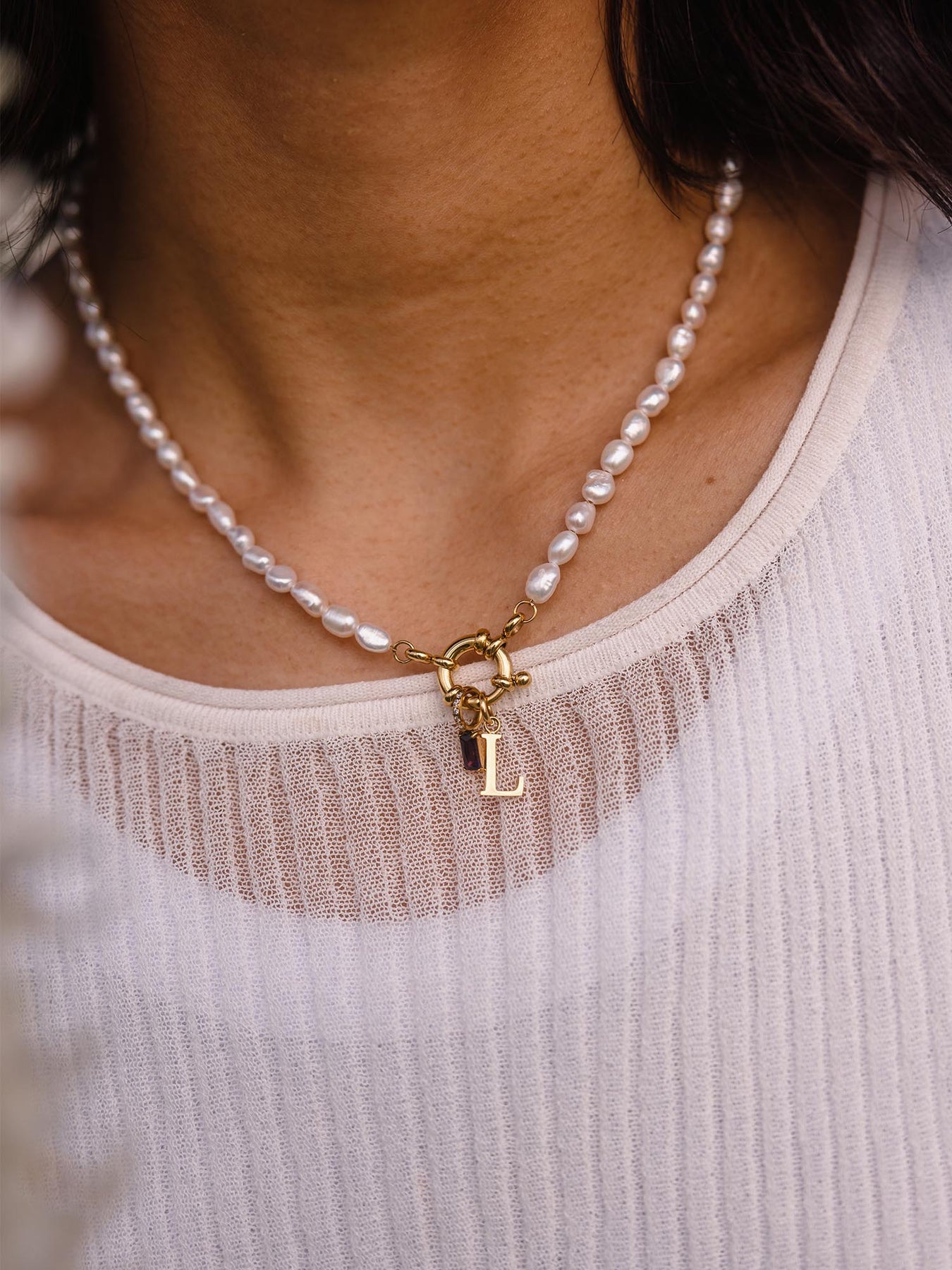 Idealny do jednej lub kilku ulubionych zawieszek. Naszyjnik Pearl Charm z perłami słodkowodnymi i oczkiem na zawieszkę nadaje stylizacji klasyczny, elegancki charakter.